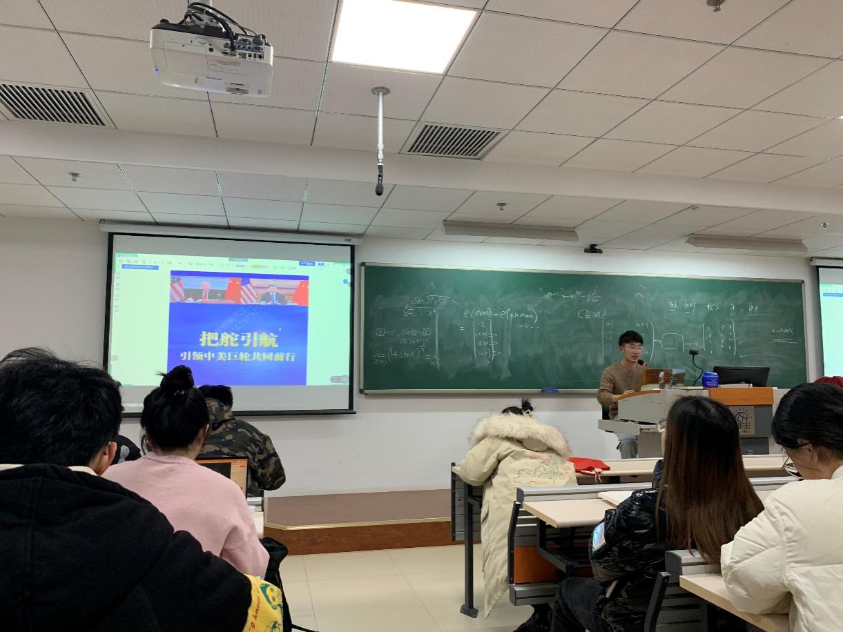 为了让学生党员了解十九届六中全会和中美元首视频会晤的内容及精神, 2021年11月23日晚,博彩社区-论坛博彩 研究生二支部于在求索313召开支部大会,以支部书记上党课的形式,对相关时事进行了学习交流。