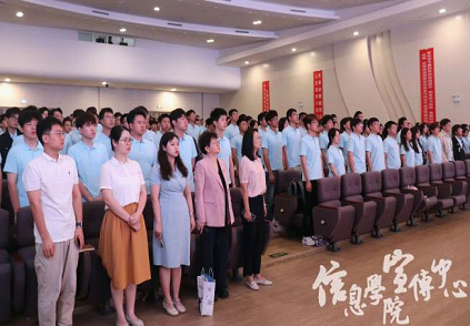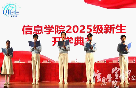 典礼特别设置了诗朗诵环节。由博彩社区 参加纪念中国人民抗日战争暨世界反法西斯战争胜利八十周年大会的五位同学孟祥雨、秦晓婷、杨正语、王宇轩、郭俊驰带来《从信息出发,向星辰进发》,铿锵有力的语句表达出青年投身强国建设的使命与担当,彰显信院学子以数字技术推动国家发展的决心,深深感染了现场师生。